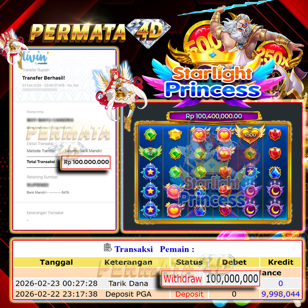 PERMATA4D JACKPOT STARLIGHT PRINCESS Rp. 100.000.000,- LUNAS