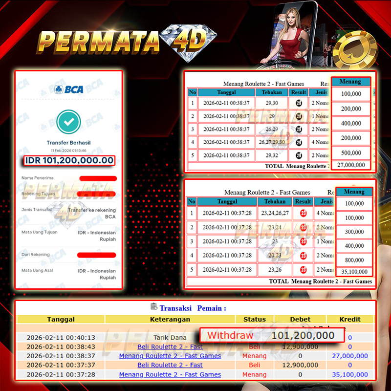 PERMATA4D JACKPOT ROULETTE 2 - FAST Rp. 101.200.000,- LUNAS