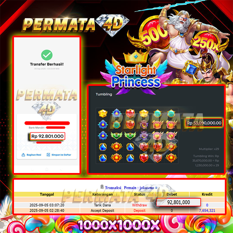 Selamat kepada User id : TU******* Telah berhasil mendapatkan kemenangan besar pada permainan STARLIGHT PRINCESS kemenangan Sebesar Rp. 44.000.000, Setelah mengisi formulir withdraw dengan kurung waktu hanya 5 - 10 menit pihak Permata4D sudah melakukan transfer kepada pemilik Userid dan dana sudah dapat di cairkan oleh pemenang. Bukti pembayaran yang kami berikan merupakan bukti pembayaran yang SAH / VALID yang langung di dapatkan melaui tanda transfer transaksi dari Bank yang di tuju.