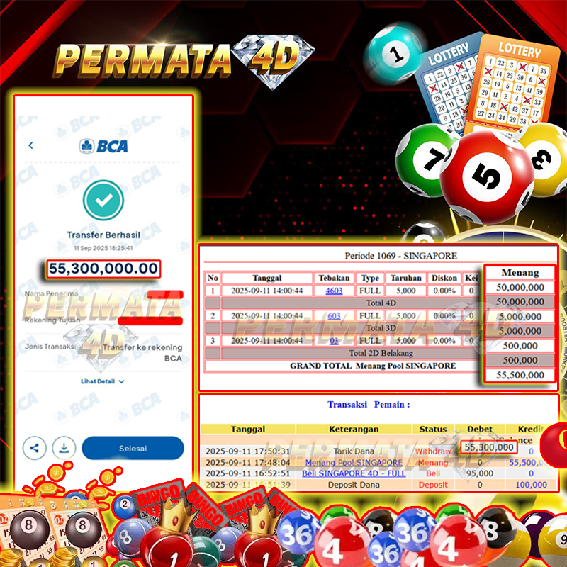 PERMATA4D JACKPOT SINGAPORE TOTO Rp. 55.300.000,- LUNAS