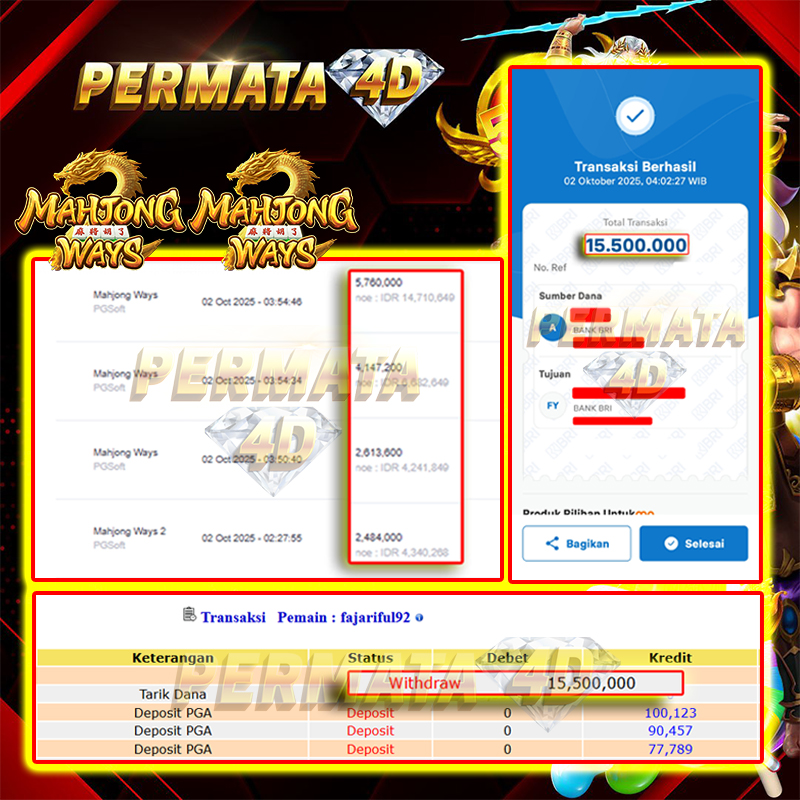Selamat Kepada Member PERMATA4D MAHJONG WAYS User id FA*********