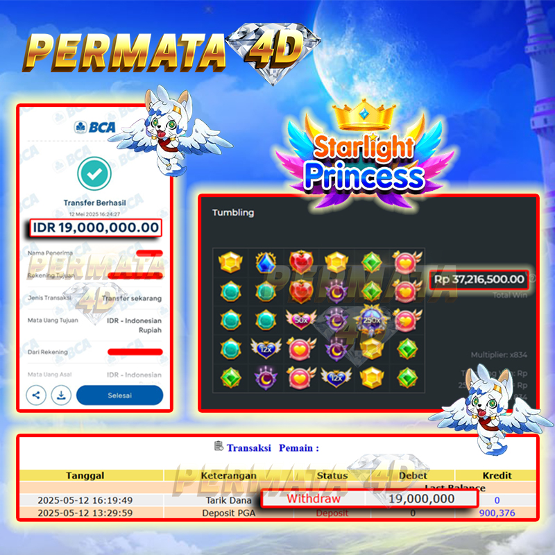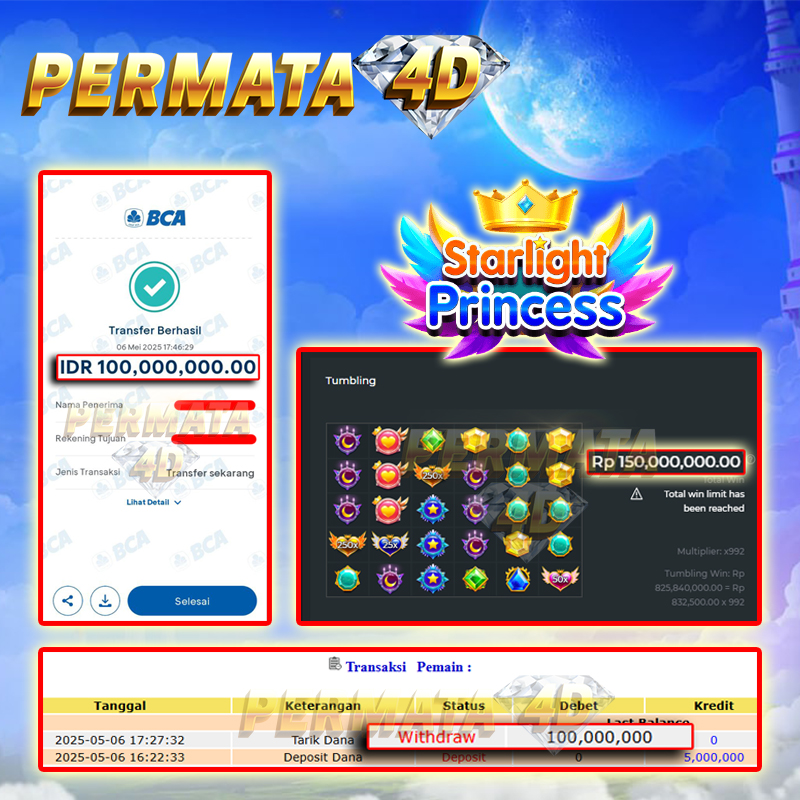 Selamat Kepada Member PERMATA4D STARLIGHT PRINCESS 1000 User id NO******