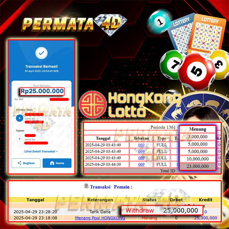PERMATA4D JACKPOT HONGKONG Rp. 25.000.000,- LUNAS