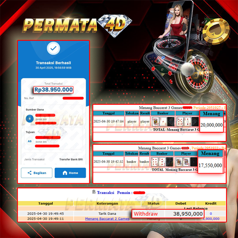 PERMATA4D JACKPOT BACCARAT 2 Rp. 38.950.000,- LUNAS