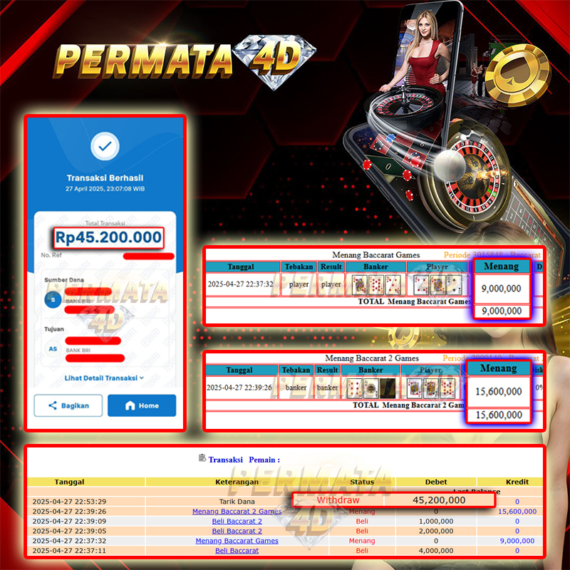 PERMATA4D JACKPOT BACCARAT GAMES Rp. 45.200.000,- LUNAS