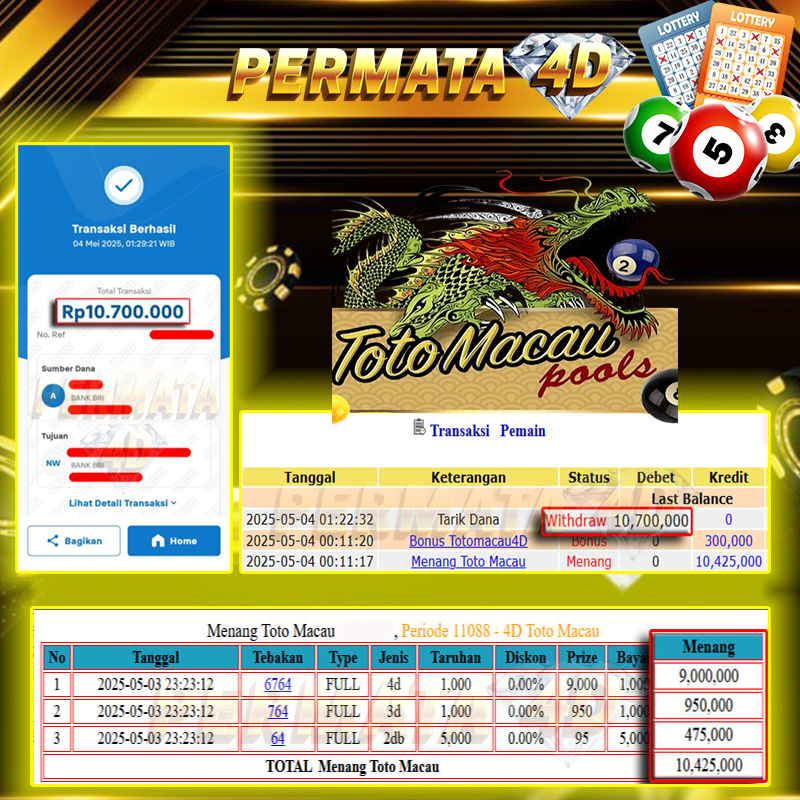 PERMATA4D JACKPOT TOTOMACAU4D Rp. 10.700.000,- LUNAS