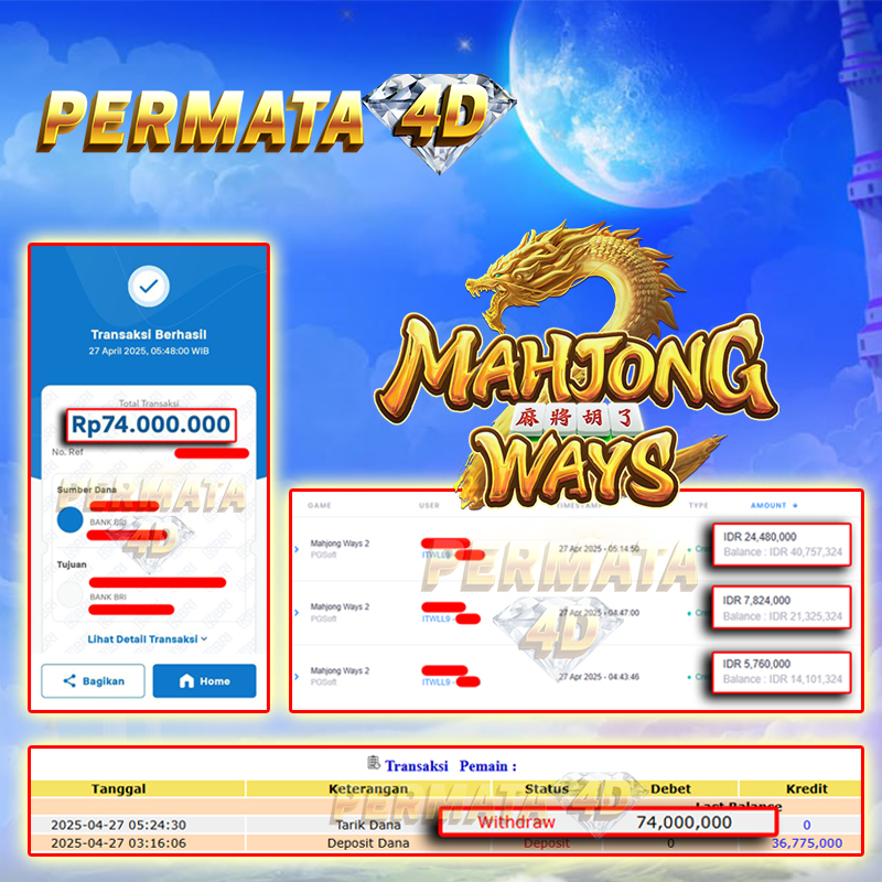PERMATA4D JACKPOT MAHJONG WAYS 2 Rp. 74.000.000,- LUNAS