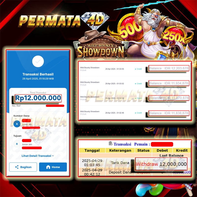 PERMATA4D JACKPOT WILD BOUNTY SHOWDOWN Rp. 12.000.000,- LUNAS