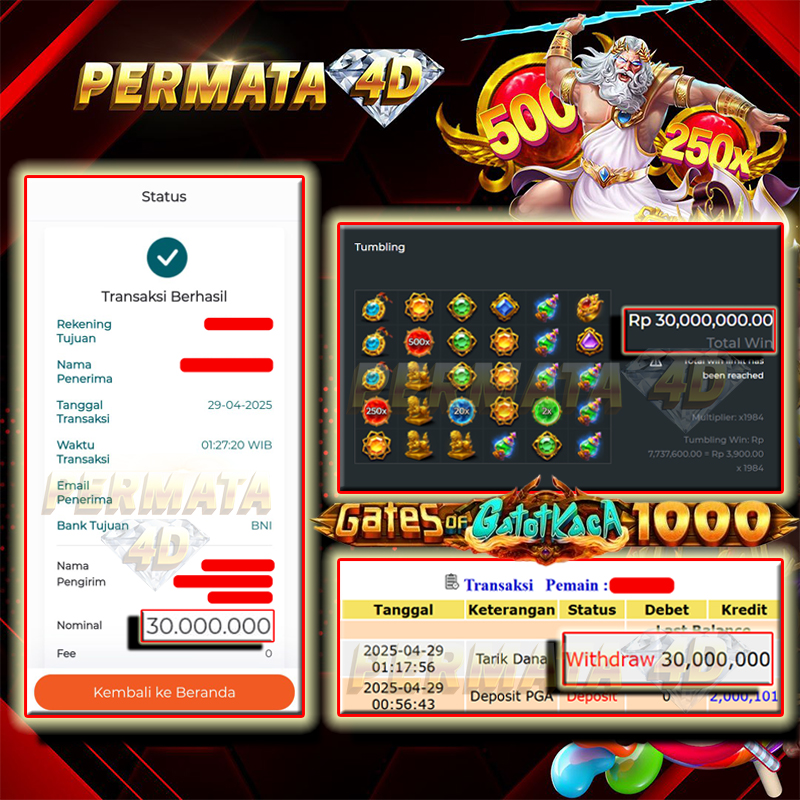 PERMATA4D JACKPOT GATES OF GATOT KACA 1000 Rp. 30.000.000,- LUNAS